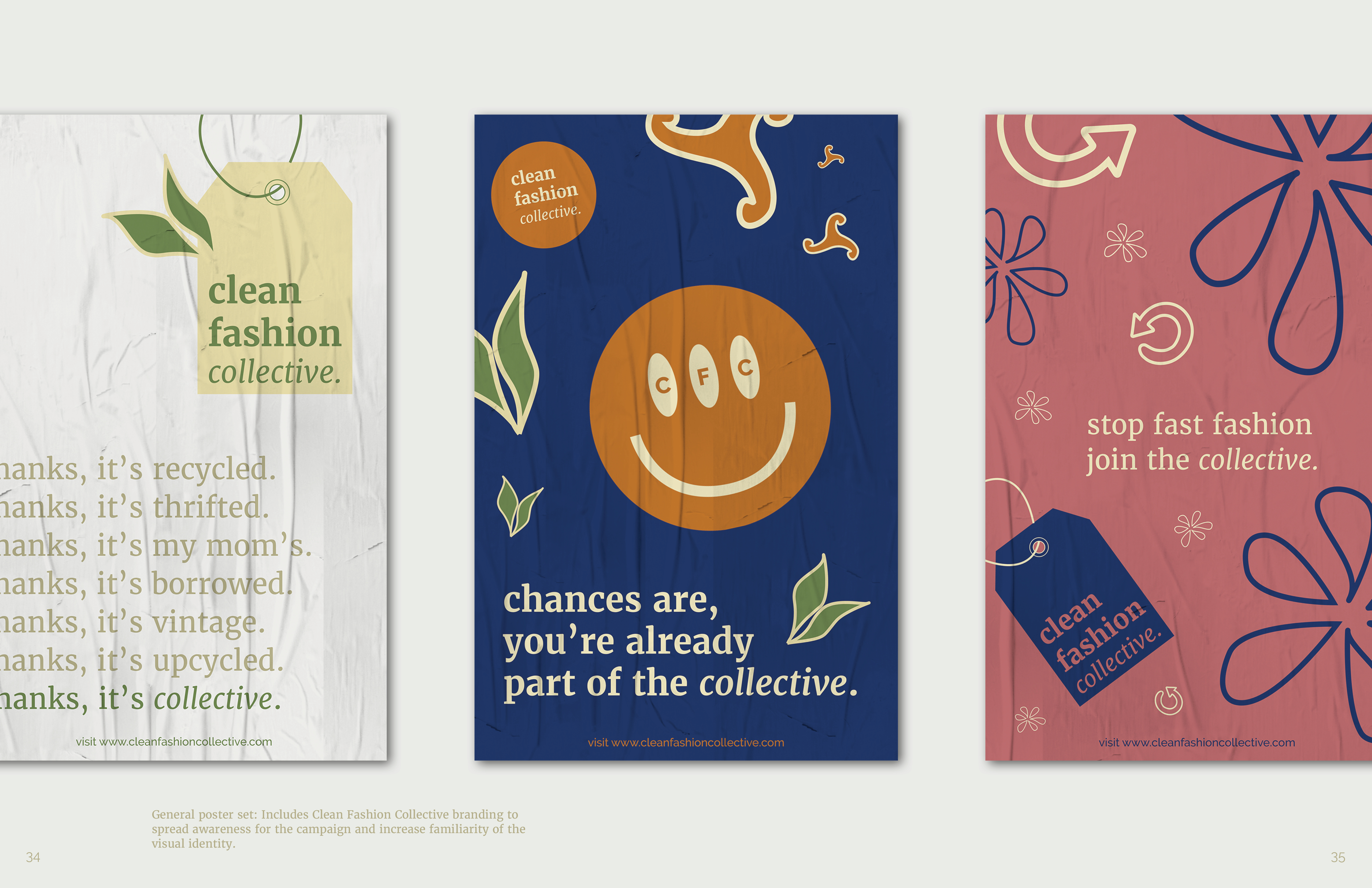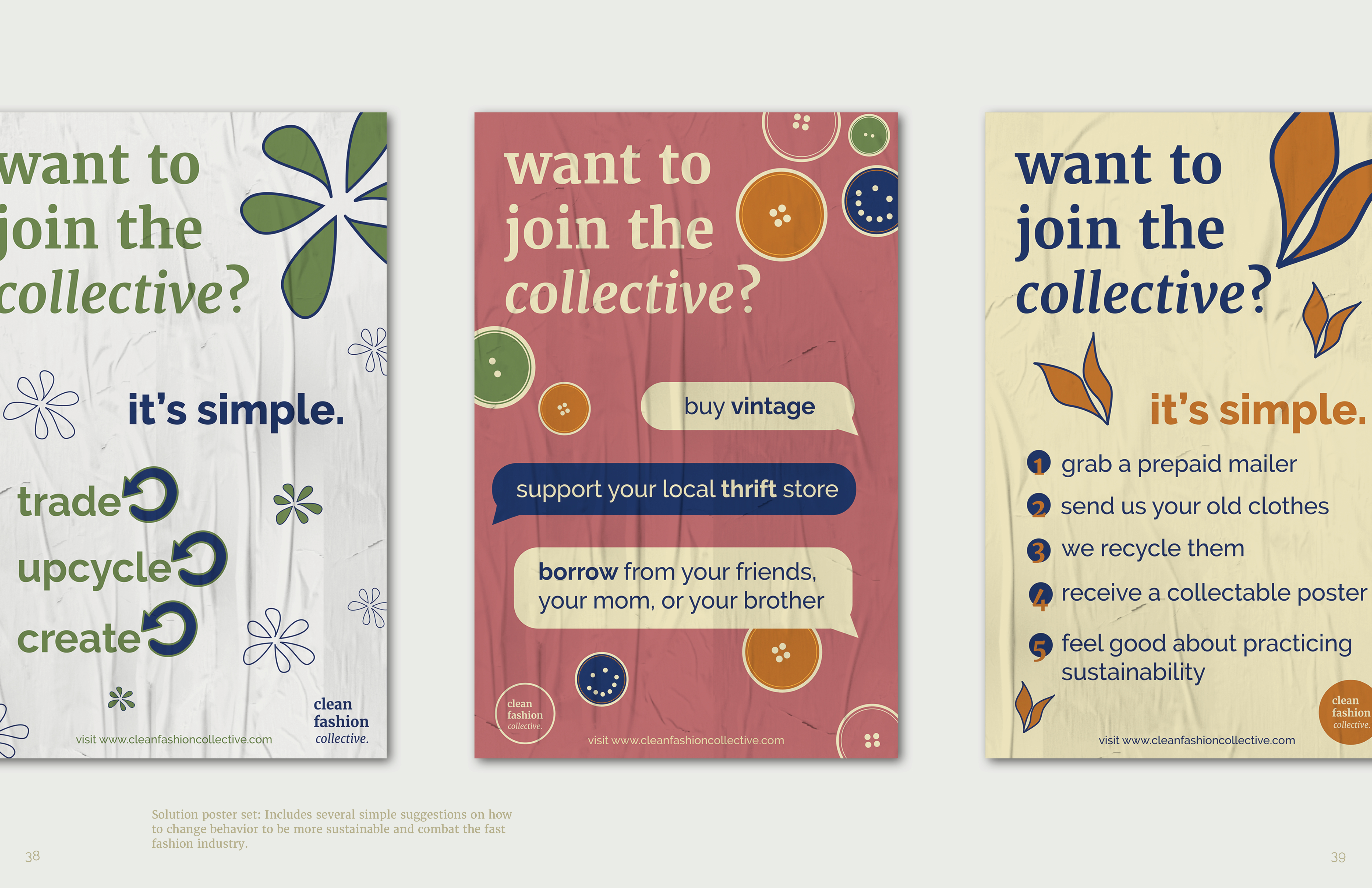 this semester-long graphic design assigment asked students to craft a social campaign based on a topic of their choice that they were passionate about. the campaign needed to include 2D, 3D and screenbased elements. given my love for fashion and shopping sustainably, i designed clean fashion collective. clean fashion collective has a two-pronged approach: it first aims to educate the audience about the consuqences of the fast fashion industry, and then offers environmentally friendly and socially conscious shopping solutions and alternatives. see the full campaign booklet and accompanying assets below!